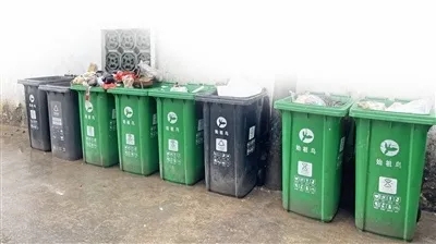 各分类垃圾桶形同虚设