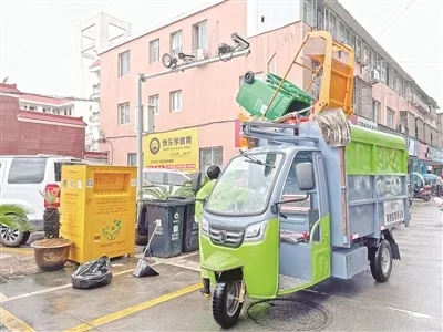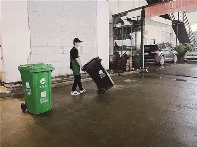 “运送垃圾的环卫工人有‘分桶’收垃圾吗?”听到这样的提问,保洁员回复,“始祖鸟”的环卫工人早上五六点就会来运垃圾,原先也分了两辆车,想按照不同的垃圾桶进行收运,但由于园区内的餐饮店并未分类,后来他们只能倒在一起运走。