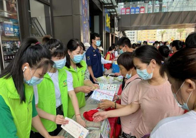 志愿者们通过发放宣传手册、垃圾分类知识问答等形式,将印有垃圾分类宣传知识的厨房工具、纸巾、围裙等日用品发放给参加活动的居民,让生活垃圾分类知识如习习凉风融入到每个人的生活当中。