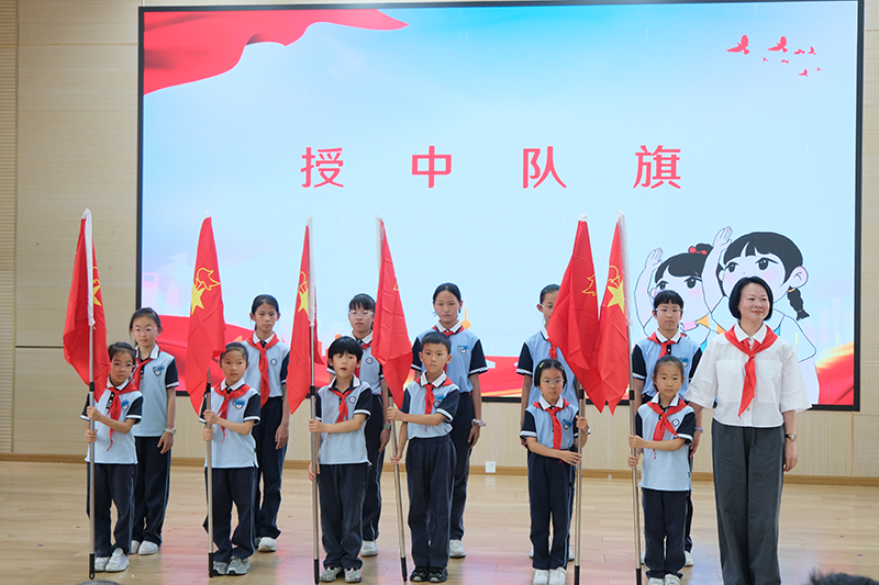 仪式在激昂的出旗曲中拉开帷幕,护旗手迈着整齐有力的步伐护送队旗入场,全体师生庄严肃立,向队旗行注目礼。随后,全场唱响中国少年先锋队队歌——《我们是共产主义接班人》,歌声嘹亮,表达了队员们对少先队组织的热爱和对未来的憧憬。