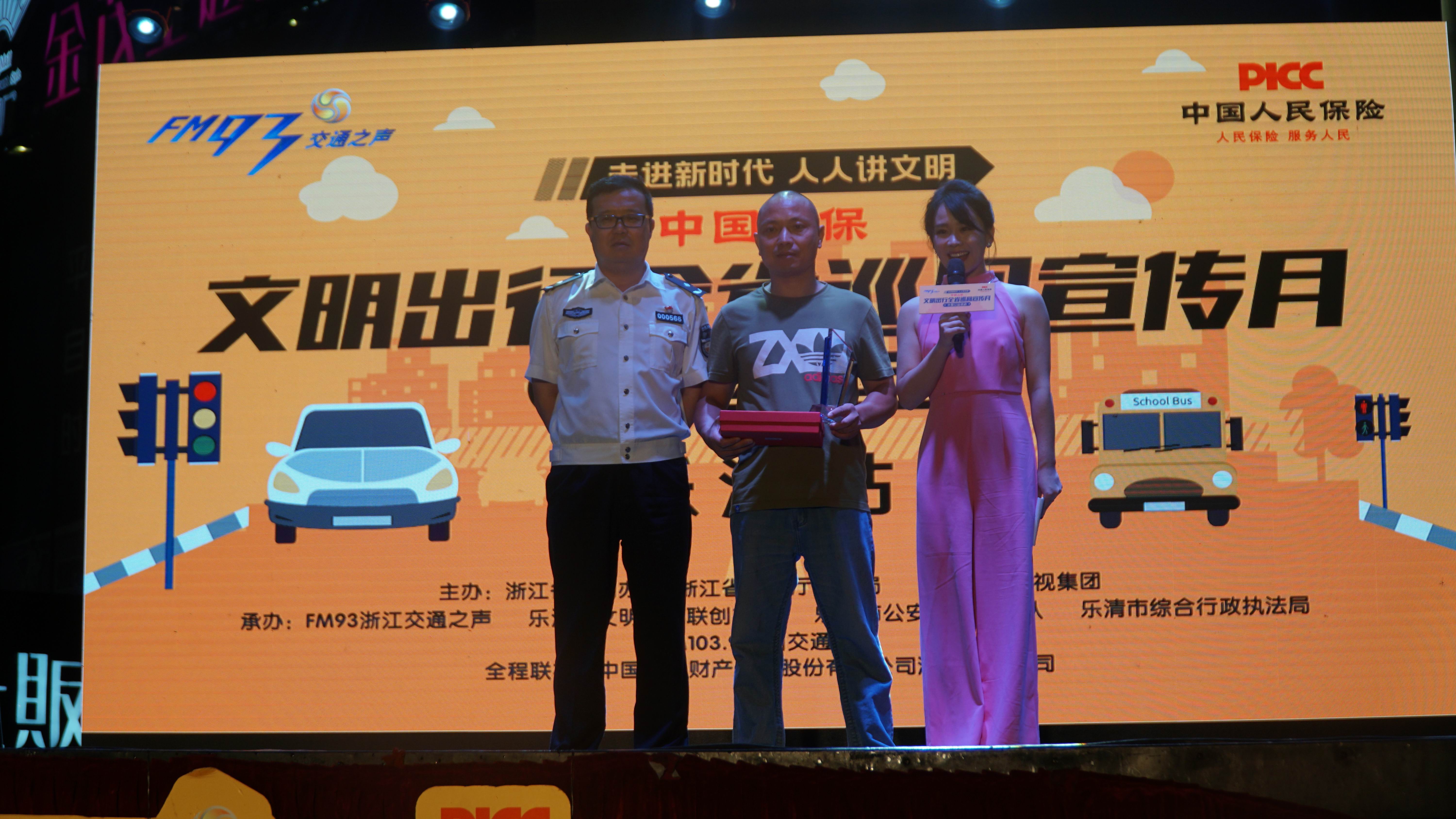 省公安厅交管局副局长吴良为文明司机徐师傅颁奖 来源:乐清市文明办