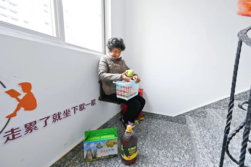 楼道里的“便民折叠椅”,让行到中途的老年人上楼可以缓一缓、歇一歇,这把椅子装到了群众的心坎上。