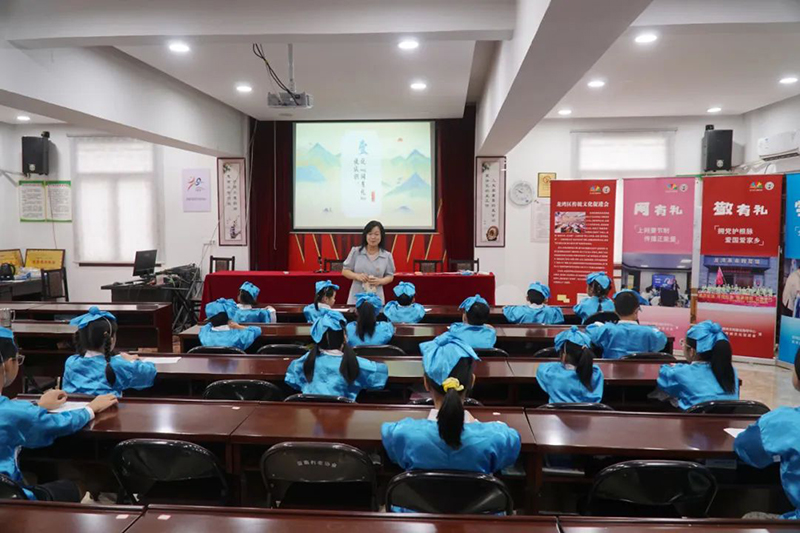 此次课程分为识礼、学礼、懂礼、守礼四个环节,特邀温州市龙湾区传统文化促进会讲师团成员陈晓飞进行宣讲。课上,陈老师结合实际案例,以通俗易懂的语言向青少年详细讲解网络成瘾的表现、不文明上网行为以及未成年人上网相关法律条例等,进一步增强青少年的网络安全知识,提升网络风险防范意识。