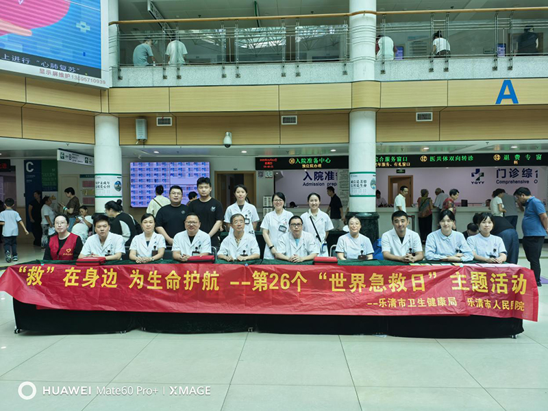 为继续深化今年第26个“世界急救日”,响应“急救与气候变化”的主题,进一步提高市民的急救意识和应急处置能力,9月18日,乐清市卫健局联合乐清市人民医院,在医院门诊大厅开展了一场“‘救’在身边 为生命护航”急救知识宣传活动,用专业行动践行“救”在身边,为市民生命安全保驾护航。