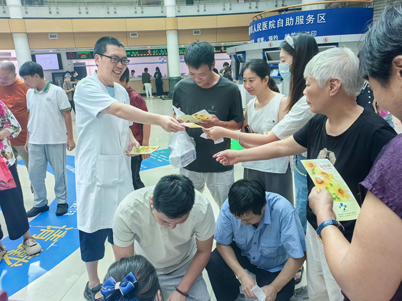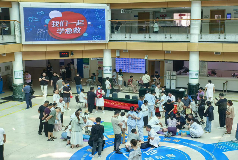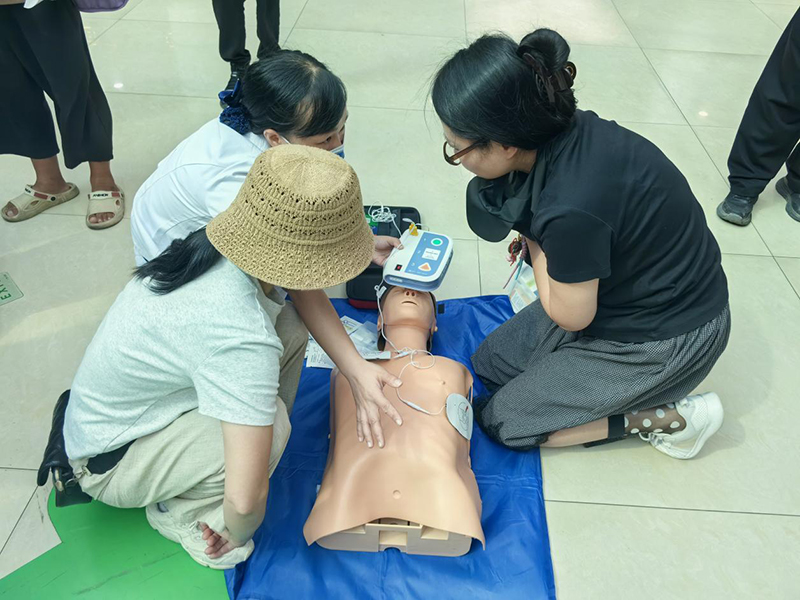 活动现场,市人民医院急诊科医护人员早早布置好了宣传展台,悬挂醒目标语,门诊宣传大屏播放急救知识,并摆放了急救知识手册、AED(自动体外除颤仪)模型及各类急救道具,浓厚的宣传氛围吸引了众多市民驻足参与。