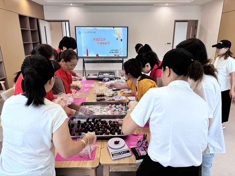 制作过程中,有经验的志愿者还现场教学,耐心地向其他参与者讲解月饼制作的技巧和要点,从面团的软硬程度到馅料的包裹方法,事无巨细。大家边学边做,互相交流心得,现场氛围十分融洽。