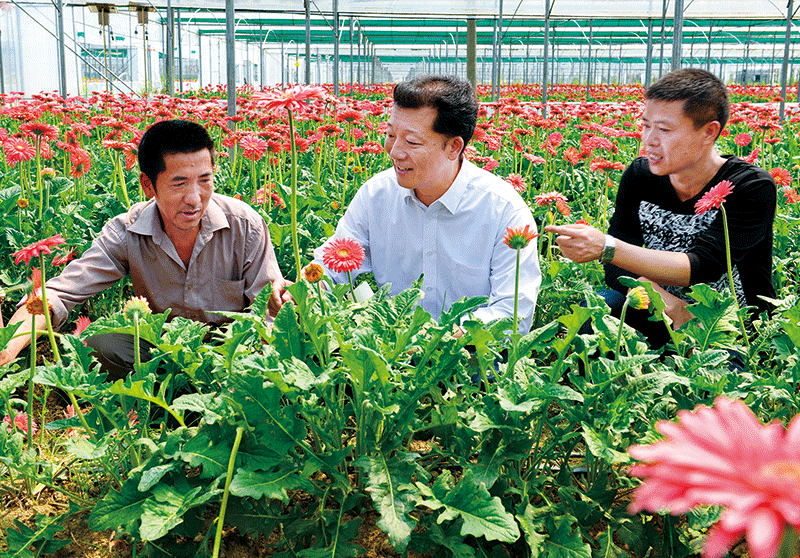 2014年4月18日,时任福建省政和县县委书记廖俊波(中)在该县铁山镇东涧村向花农了解花卉生产情况。廖俊波同志生前是福建省南平市委常委、副市长,武夷新区党工委书记,2015年6月被中央组织部授予“全国优秀县委书记”称号。2017年3月18日,廖俊波同志在赶往武夷新区主持召开会议途中不幸发生车祸,因公殉职。廖俊波同志任职期间牢记党的嘱托,尽心尽责,带领当地干部群众扑下身子、苦干实干,以实际行动体现了对党忠诚、心系群众、忘我工作、无私奉献的优秀品质。 新华社发 徐庭盛/摄